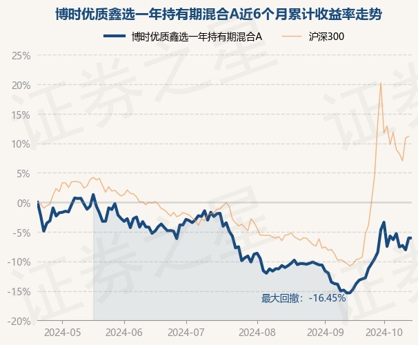 证券之星消息,10月21日,博时优质鑫选一年持有期混合A最新单位净值为0.8093元,累计净值为0.8093元,较前一交易日上涨0.0%。历史数据显示该基金近1个月上涨8.28%,近3个月下跌0.89%,近6个月下跌5.77%,近1年上涨12.4%。该基金近6个月的累计收益率走势如下图: