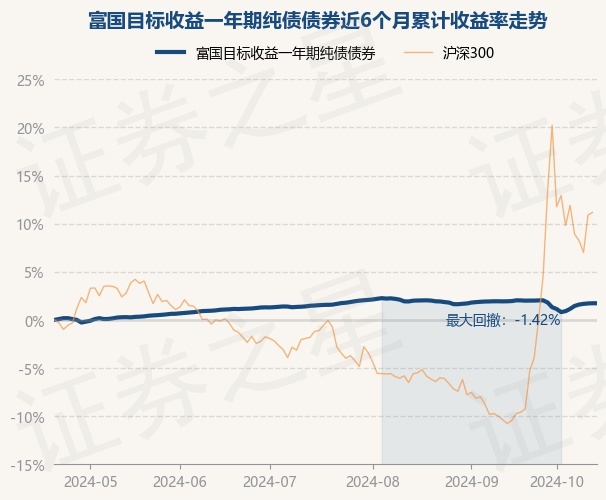 证券之星消息,10月21日,富国目标收益一年期纯债债券最新单位净值为1.1302元,累计净值为1.5522元,较前一交易日上涨0.0%。历史数据显示该基金近1个月下跌0.26%,近3个月上涨0.14%,近6个月上涨1.73%,近1年上涨5.27%。该基金近6个月的累计收益率走势如下图: