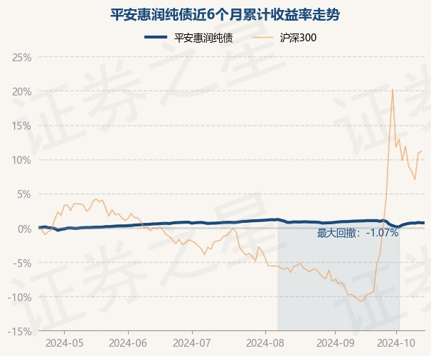 证券之星消息,10月21日,平安惠润纯债最新单位净值为1.063元,累计净值为1.135元,较前一交易日上涨0.0%。历史数据显示该基金近1个月下跌0.32%,近3个月下跌0.07%,近6个月上涨0.72%,近1年上涨2.8%。该基金近6个月的累计收益率走势如下图: