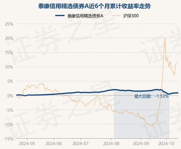证券之星消息,10月21日,泰康信用精选债券A最新单位净值为1.1286元,累计净值为1.1937元,较前一交易日下跌0.02%。历史数据显示该基金近1个月下跌1.11%,近3个月下跌0.25%,近6个月上涨0.85%,近1年上涨3.88%。该基金近6个月的累计收益率走势如下图:
