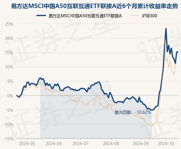 证券之星消息,10月21日,易方达MSCI中国A50互联互通ETF联接A最新单位净值为0.879元,累计净值为0.879元,较前一交易日上涨0.11%。历史数据显示该基金近1个月上涨19.85%,近3个月上涨10.11%,近6个月上涨15.22%,近1年上涨18.72%。该基金近6个月的累计收益率走势如下图: