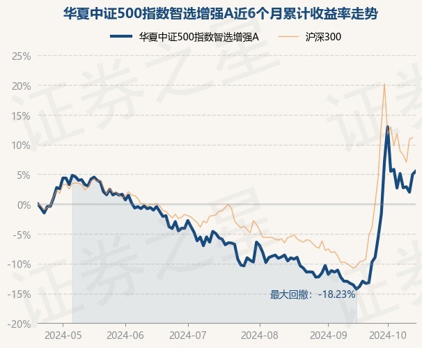证券之星消息,10月21日,华夏中证500指数智选增强A最新单位净值为0.9968元,累计净值为0.9968元,较前一交易日上涨0.5%。历史数据显示该基金近1个月上涨21.74%,近3个月上涨12.9%,近6个月上涨5.51%,近1年上涨8.45%。该基金近6个月的累计收益率走势如下图: