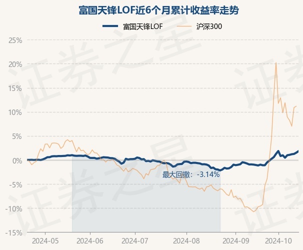 证券之星消息,10月21日,富国天锋LOF最新单位净值为1.1136元,累计净值为1.6931元,较前一交易日上涨0.31%。历史数据显示该基金近1个月上涨2.95%,近3个月上涨2.48%,近6个月上涨1.82%,近1年上涨3.93%。该基金近6个月的累计收益率走势如下图: