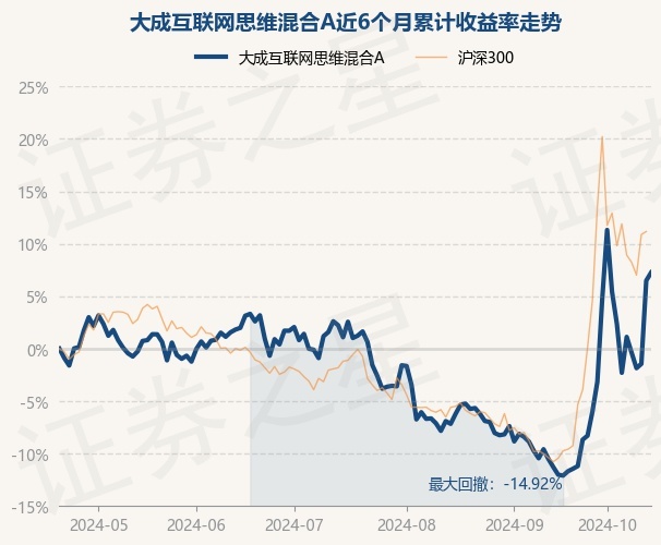 证券之星消息,10月21日,大成互联网思维混合A最新单位净值为1.6126元,累计净值为1.6126元,较前一交易日上涨0.72%。历史数据显示该基金近1个月上涨21.13%,近3个月上涨5.53%,近6个月上涨7.26%,近1年上涨4.92%。该基金近6个月的累计收益率走势如下图: