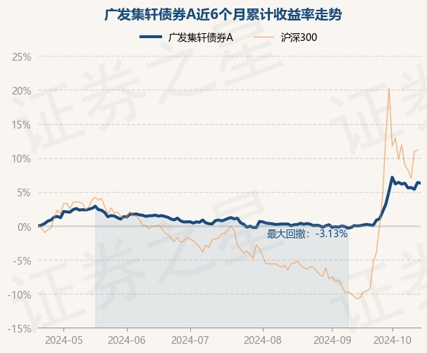 证券之星消息,10月21日,广发集轩债券A最新单位净值为1.055元,累计净值为1.055元,较前一交易日下跌0.09%。历史数据显示该基金近1个月上涨6.15%,近3个月上涨5.22%,近6个月上涨6.29%,近1年上涨6.97%。该基金近6个月的累计收益率走势如下图: