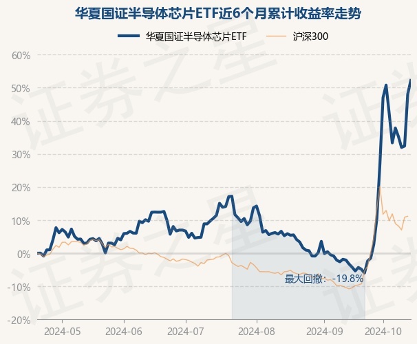 证券之星消息,10月21日,华夏国证半导体芯片ETF最新单位净值为1.2081元,累计净值为1.2081元,较前一交易日上涨2.83%。历史数据显示该基金近1个月上涨59.93%,近3个月上涨29.93%,近6个月上涨52.17%,近1年上涨29.0%。该基金近6个月的累计收益率走势如下图: