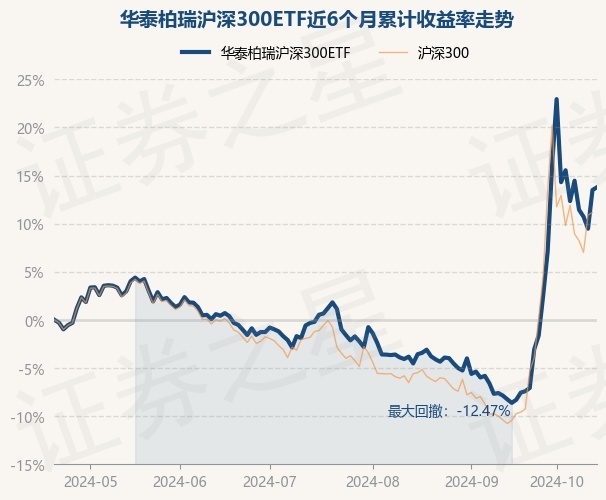 证券之星消息,10月21日,华泰柏瑞沪深300ETF最新单位净值为4.0186元,累计净值为1.7389元,较前一交易日上涨0.25%。历史数据显示该基金近1个月上涨22.89%,近3个月上涨11.74%,近6个月上涨13.78%,近1年上涨14.69%。该基金近6个月的累计收益率走势如下图: