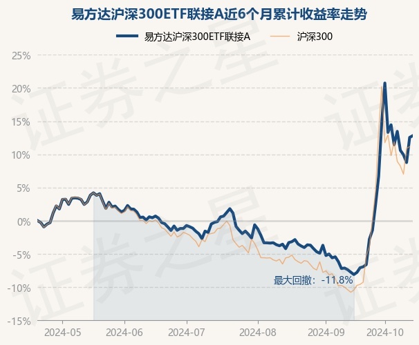证券之星消息,10月21日,易方达沪深300ETF联接A最新单位净值为1.5489元,累计净值为1.5489元,较前一交易日上涨0.23%。历史数据显示该基金近1个月上涨21.21%,近3个月上涨10.79%,近6个月上涨12.8%,近1年上涨13.91%。该基金近6个月的累计收益率走势如下图: