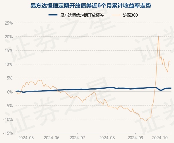 证券之星消息,10月21日,易方达恒信定期开放债券最新单位净值为1.0276元,累计净值为1.2616元,较前一交易日上涨0.0%。历史数据显示该基金近1个月下跌0.16%,近3个月上涨0.28%,近6个月上涨1.21%,近1年上涨4.22%。该基金近6个月的累计收益率走势如下图: