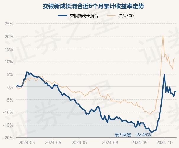 证券之星消息,10月21日,交银新成长混合最新单位净值为3.182元,累计净值为3.582元,较前一交易日上涨0.0%。历史数据显示该基金近1个月上涨18.73%,近3个月上涨6.53%,近6个月下跌1.76%,近1年下跌0.38%。该基金近6个月的累计收益率走势如下图: