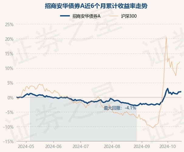 证券之星消息,10月22日,招商安华债券A最新单位净值为1.1819元,累计净值为1.2147元,较前一交易日上涨0.07%。历史数据显示该基金近1个月上涨4.34%,近3个月上涨2.85%,近6个月上涨1.91%,近1年上涨4.21%。该基金近6个月的累计收益率走势如下图: