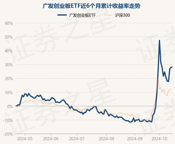 证券之星消息,10月22日,广发创业板ETF最新单位净值为1.3284元,累计净值为1.3284元,较前一交易日上涨0.3%。历史数据显示该基金近1个月上涨44.25%,近3个月上涨28.82%,近6个月上涨28.19%,近1年上涨18.15%。该基金近6个月的累计收益率走势如下图: