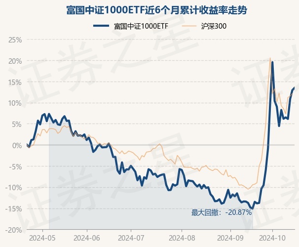 证券之星消息,10月22日,富国中证1000ETF最新单位净值为2.3909元,累计净值为0.8418元,较前一交易日上涨0.47%。历史数据显示该基金近1个月上涨31.72%,近3个月上涨21.97%,近6个月上涨13.47%,近1年上涨3.03%。该基金近6个月的累计收益率走势如下图: