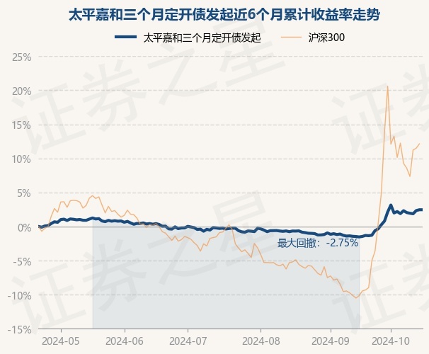 证券之星消息,10月22日,太平嘉和三个月定开债发起最新单位净值为1.039元,累计净值为1.039元,较前一交易日上涨0.0%。历史数据显示该基金近1个月上涨4.01%,近3个月上涨2.87%,近6个月上涨2.61%,近1年上涨4.41%。该基金近6个月的累计收益率走势如下图: