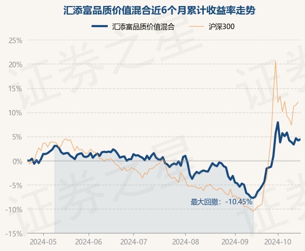 证券之星消息,10月22日,汇添富品质价值混合最新单位净值为1.1491元,累计净值为1.1491元,较前一交易日上涨0.23%。历史数据显示该基金近1个月上涨10.13%,近3个月上涨5.23%,近6个月上涨4.41%,近1年上涨13.12%。该基金近6个月的累计收益率走势如下图: