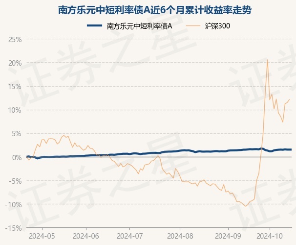 证券之星消息,10月22日,南方乐元中短利率债A最新单位净值为1.0408元,累计净值为1.1258元,较前一交易日上涨0.0%。历史数据显示该基金近1个月下跌0.18%,近3个月上涨0.43%,近6个月上涨1.42%,近1年上涨4.13%。该基金近6个月的累计收益率走势如下图: