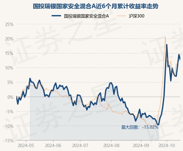 证券之星消息,10月22日,国投瑞银国家安全混合A最新单位净值为1.06元,累计净值为1.219元,较前一交易日下跌1.49%。历史数据显示该基金近1个月上涨24.56%,近3个月上涨11.34%,近6个月上涨12.77%,近1年上涨10.42%。该基金近6个月的累计收益率走势如下图: