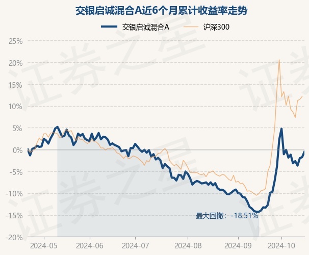 证券之星消息,10月22日,交银启诚混合A最新单位净值为1.116元,累计净值为1.116元,较前一交易日上涨1.24%。历史数据显示该基金近1个月上涨14.76%,近3个月上涨3.88%,近6个月下跌0.54%,近1年上涨12.05%。该基金近6个月的累计收益率走势如下图: