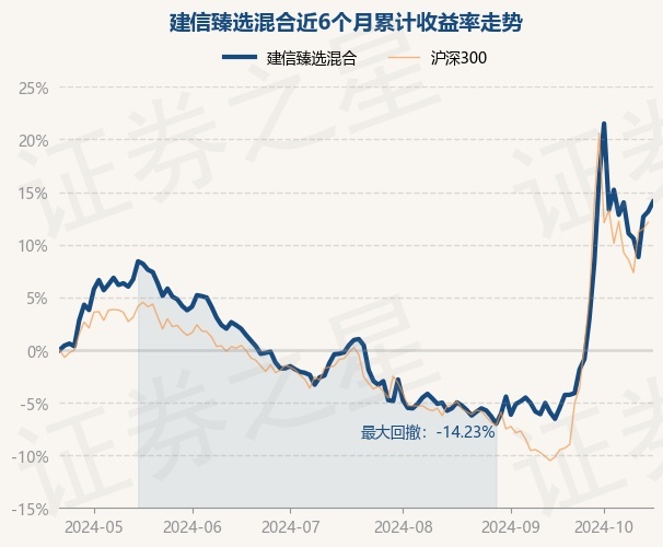 证券之星消息,10月22日,建信臻选混合最新单位净值为0.8684元,累计净值为0.8684元,较前一交易日上涨0.82%。历史数据显示该基金近1个月上涨19.15%,近3个月上涨13.58%,近6个月上涨14.08%,近1年上涨9.19%。该基金近6个月的累计收益率走势如下图:
