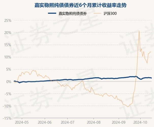 证券之星消息,10月22日,嘉实稳熙纯债债券最新单位净值为1.0055元,累计净值为1.2829元,较前一交易日下跌0.13%。历史数据显示该基金近1个月下跌0.54%,近3个月上涨0.43%,近6个月上涨1.31%,近1年上涨4.4%。该基金近6个月的累计收益率走势如下图: