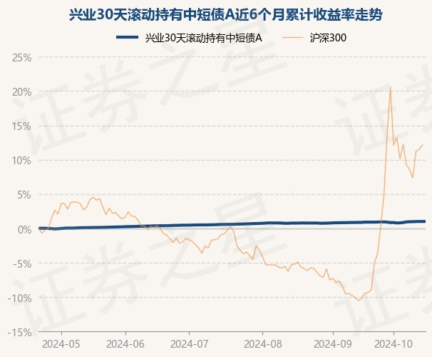 证券之星消息,10月22日,兴业30天滚动持有中短债A最新单位净值为1.0713元,累计净值为1.0713元,较前一交易日上涨0.01%。历史数据显示该基金近1个月上涨0.1%,近3个月上涨0.39%,近6个月上涨1.02%,近1年上涨2.74%。该基金近6个月的累计收益率走势如下图: