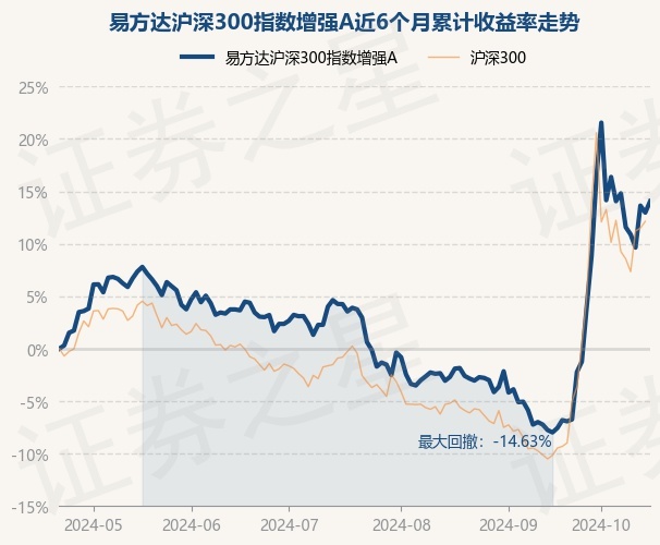 证券之星消息,10月22日,易方达沪深300指数增强A最新单位净值为0.8105元,累计净值为0.8105元,较前一交易日上涨0.96%。历史数据显示该基金近1个月上涨22.54%,近3个月上涨10.77%,近6个月上涨14.06%,近1年上涨21.92%。该基金近6个月的累计收益率走势如下图: