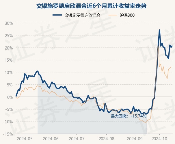 证券之星消息,10月22日,交银施罗德启欣混合最新单位净值为0.6281元,累计净值为0.6281元,较前一交易日上涨0.53%。历史数据显示该基金近1个月上涨26.76%,近3个月上涨21.47%,近6个月上涨20.72%,近1年上涨11.76%。该基金近6个月的累计收益率走势如下图: