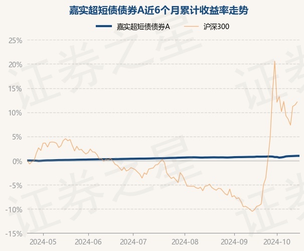证券之星消息,10月22日,嘉实超短债债券A最新单位净值为1.0515元,累计净值为1.1432元,较前一交易日上涨0.0%。历史数据显示该基金近1个月上涨0.17%,近3个月上涨0.46%,近6个月上涨0.98%,近1年上涨2.78%。该基金近6个月的累计收益率走势如下图: