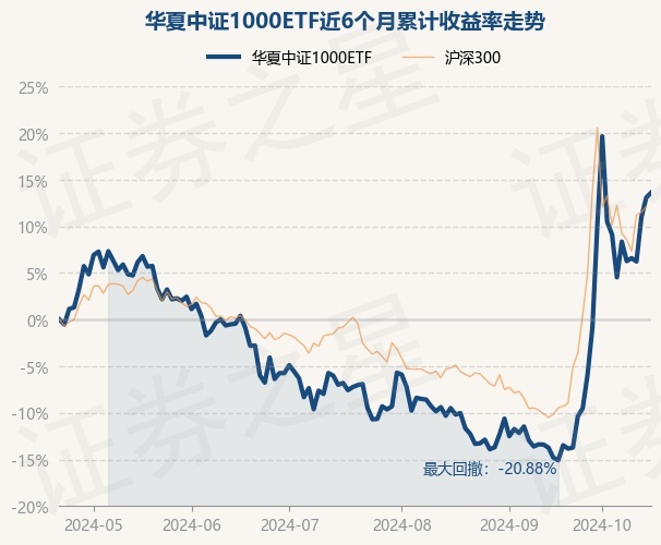 证券之星消息,10月22日,华夏中证1000ETF最新单位净值为2.3981元,累计净值为0.9941元,较前一交易日上涨0.47%。历史数据显示该基金近1个月上涨31.86%,近3个月上涨22.05%,近6个月上涨13.61%,近1年上涨2.99%。该基金近6个月的累计收益率走势如下图: