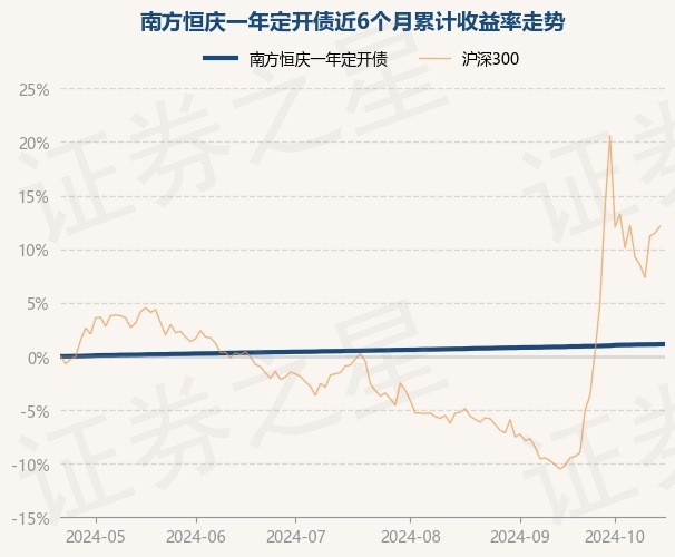 证券之星消息,10月22日,南方恒庆一年定开债最新单位净值为1.0209元,累计净值为1.1036元,较前一交易日上涨0.01%。历史数据显示该基金近1个月上涨0.21%,近3个月上涨0.59%,近6个月上涨1.14%,近1年上涨2.43%。该基金近6个月的累计收益率走势如下图: