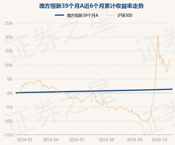 证券之星消息,10月22日,南方恒新39个月A最新单位净值为1.0363元,累计净值为1.1903元,较前一交易日上涨0.01%。历史数据显示该基金近1个月上涨0.26%,近3个月上涨0.68%,近6个月上涨1.32%,近1年上涨2.58%。该基金近6个月的累计收益率走势如下图: