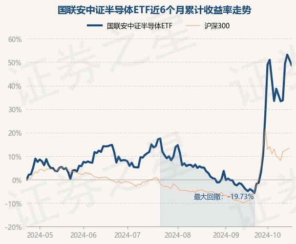 证券之星消息,10月23日,国联安中证半导体ETF最新单位净值为0.9742元,累计净值为1.9484元,较前一交易日下跌1.58%。历史数据显示该基金近1个月上涨57.69%,近3个月上涨32.85%,近6个月上涨48.71%,近1年上涨23.99%。该基金近6个月的累计收益率走势如下图:
