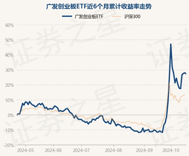 证券之星消息,10月23日,广发创业板ETF最新单位净值为1.3214元,累计净值为1.3214元,较前一交易日下跌0.53%。历史数据显示该基金近1个月上涨44.07%,近3个月上涨32.15%,近6个月上涨27.29%,近1年上涨19.56%。该基金近6个月的累计收益率走势如下图: