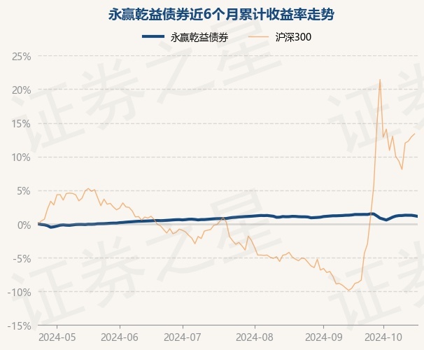 证券之星消息,10月23日,永赢乾益债券最新单位净值为1.0789元,累计净值为1.1129元,较前一交易日下跌0.09%。历史数据显示该基金近1个月下跌0.29%,近3个月上涨0.17%,近6个月上涨1.12%,近1年上涨4.48%。该基金近6个月的累计收益率走势如下图: