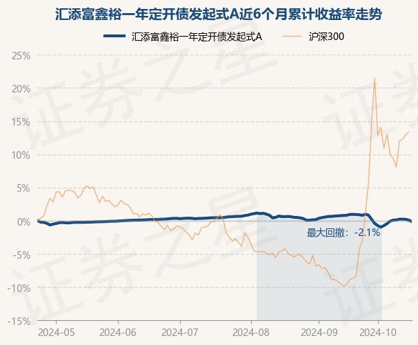 证券之星消息,10月23日,汇添富鑫裕一年定开债发起式A最新单位净值为1.003元,累计净值为1.053元,较前一交易日下跌0.21%。历史数据显示该基金近1个月下跌1.02%,近3个月下跌0.7%,近6个月下跌0.11%,近1年上涨2.33%。该基金近6个月的累计收益率走势如下图: