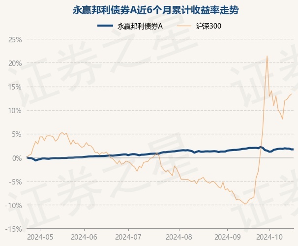 证券之星消息,10月23日,永赢邦利债券A最新单位净值为1.1154元,累计净值为1.1754元,较前一交易日上涨0.0%。历史数据显示该基金近1个月下跌0.38%,近3个月上涨0.53%,近6个月上涨1.63%,近1年上涨5.01%。该基金近6个月的累计收益率走势如下图: