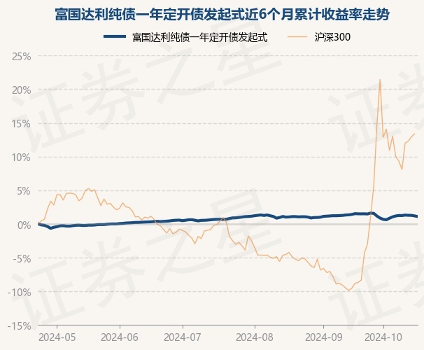 证券之星消息,10月23日,富国达利纯债一年定开债发起式最新单位净值为1.0387元,累计净值为1.1054元,较前一交易日下跌0.1%。历史数据显示该基金近1个月下跌0.4%,近3个月上涨0.2%,近6个月上涨1.1%,近1年上涨4.31%。该基金近6个月的累计收益率走势如下图: