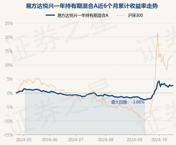 证券之星消息,10月23日,易方达悦兴一年持有期混合A最新单位净值为1.0254元,累计净值为1.0254元,较前一交易日上涨0.0%。历史数据显示该基金近1个月上涨4.78%,近3个月上涨3.58%,近6个月上涨2.66%,近1年上涨4.23%。该基金近6个月的累计收益率走势如下图: