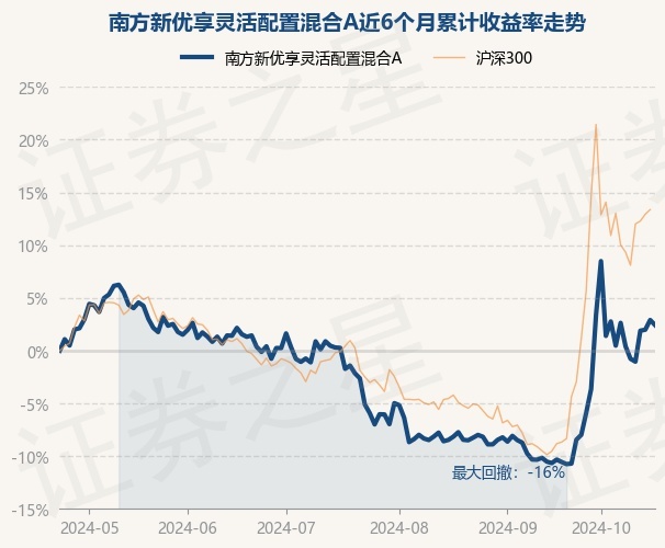 证券之星消息,10月23日,南方新优享灵活配置混合A最新单位净值为3.2385元,累计净值为3.2385元,较前一交易日下跌0.47%。历史数据显示该基金近1个月上涨14.71%,近3个月上涨7.92%,近6个月上涨2.42%,近1年上涨14.15%。该基金近6个月的累计收益率走势如下图: