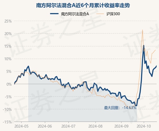 证券之星消息,10月23日,南方阿尔法混合A最新单位净值为0.4965元,累计净值为0.4965元,较前一交易日上涨0.63%。历史数据显示该基金近1个月上涨17.24%,近3个月上涨8.67%,近6个月上涨7.07%,近1年上涨9.55%。该基金近6个月的累计收益率走势如下图: