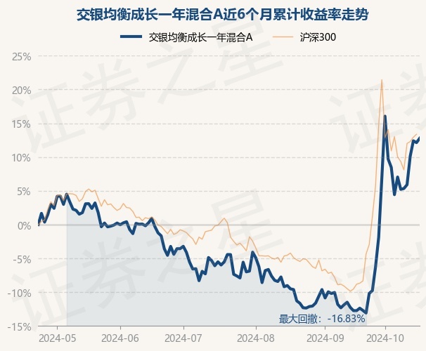 证券之星消息,10月23日,交银均衡成长一年混合A最新单位净值为0.8349元,累计净值为0.8979元,较前一交易日上涨0.57%。历史数据显示该基金近1个月上涨29.74%,近3个月上涨21.72%,近6个月上涨12.76%,近1年上涨9.91%。该基金近6个月的累计收益率走势如下图: