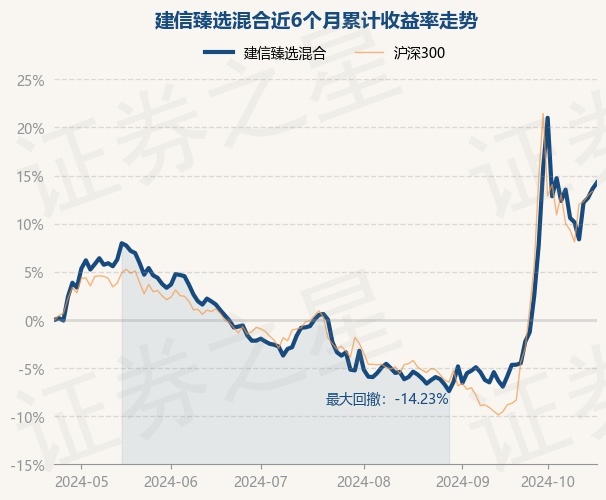 证券之星消息,10月23日,建信臻选混合最新单位净值为0.8735元,累计净值为0.8735元,较前一交易日上涨0.59%。历史数据显示该基金近1个月上涨19.66%,近3个月上涨16.98%,近6个月上涨14.27%,近1年上涨10.74%。该基金近6个月的累计收益率走势如下图: