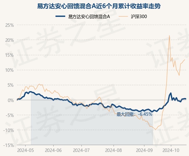 证券之星消息,10月23日,易方达安心回馈混合A最新单位净值为2.316元,累计净值为2.316元,较前一交易日下跌0.09%。历史数据显示该基金近1个月上涨3.25%,近3个月上涨2.66%,近6个月上涨0.3%,近1年上涨2.98%。该基金近6个月的累计收益率走势如下图: