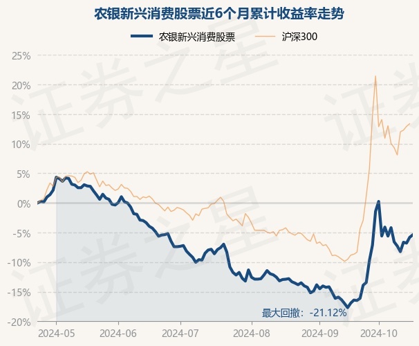 证券之星消息,10月23日,农银新兴消费股票最新单位净值为0.5831元,累计净值为0.5831元,较前一交易日上涨0.45%。历史数据显示该基金近1个月上涨12.79%,近3个月上涨6.08%,近6个月下跌5.4%,近1年下跌2.15%。该基金近6个月的累计收益率走势如下图: