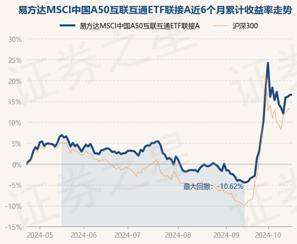 证券之星消息,10月23日,易方达MSCI中国A50互联互通ETF联接A最新单位净值为0.8829元,累计净值为0.8829元,较前一交易日上涨0.03%。历史数据显示该基金近1个月上涨20.01%,近3个月上涨13.56%,近6个月上涨16.59%,近1年上涨20.4%。该基金近6个月的累计收益率走势如下图:
