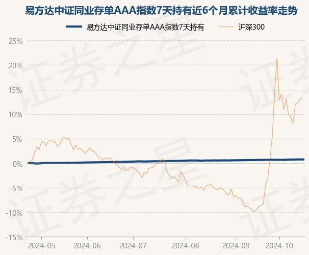 证券之星消息,10月23日,易方达中证同业存单AAA指数7天持有最新单位净值为1.054元,累计净值为1.054元,较前一交易日上涨0.0%。历史数据显示该基金近1个月上涨0.08%,近3个月上涨0.33%,近6个月上涨0.76%,近1年上涨2.26%。该基金近6个月的累计收益率走势如下图: