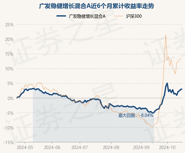 证券之星消息,10月23日,广发稳健增长混合A最新单位净值为1.5068元,累计净值为4.5668元,较前一交易日上涨0.01%。历史数据显示该基金近1个月上涨6.92%,近3个月上涨5.41%,近6个月上涨2.93%,近1年上涨2.5%。该基金近6个月的累计收益率走势如下图: