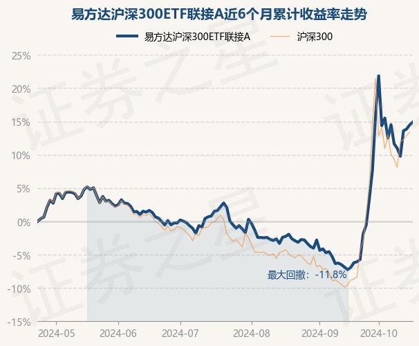 证券之星消息,10月23日,易方达沪深300ETF联接A最新单位净值为1.5632元,累计净值为1.5632元,较前一交易日上涨0.38%。历史数据显示该基金近1个月上涨21.9%,近3个月上涨14.83%,近6个月上涨14.91%,近1年上涨16.11%。该基金近6个月的累计收益率走势如下图: