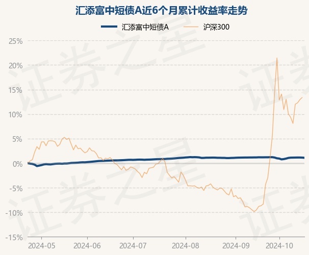 证券之星消息,10月23日,汇添富中短债A最新单位净值为1.0813元,累计净值为1.1392元,较前一交易日下跌0.04%。历史数据显示该基金近1个月下跌0.1%,近3个月上涨0.18%,近6个月上涨1.09%,近1年上涨4.22%。该基金近6个月的累计收益率走势如下图:
