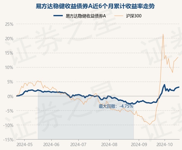证券之星消息,10月23日,易方达稳健收益债券A最新单位净值为1.3751元,累计净值为2.4667元,较前一交易日上涨0.1%。历史数据显示该基金近1个月上涨5.36%,近3个月上涨3.84%,近6个月上涨3.09%,近1年上涨6.54%。该基金近6个月的累计收益率走势如下图: